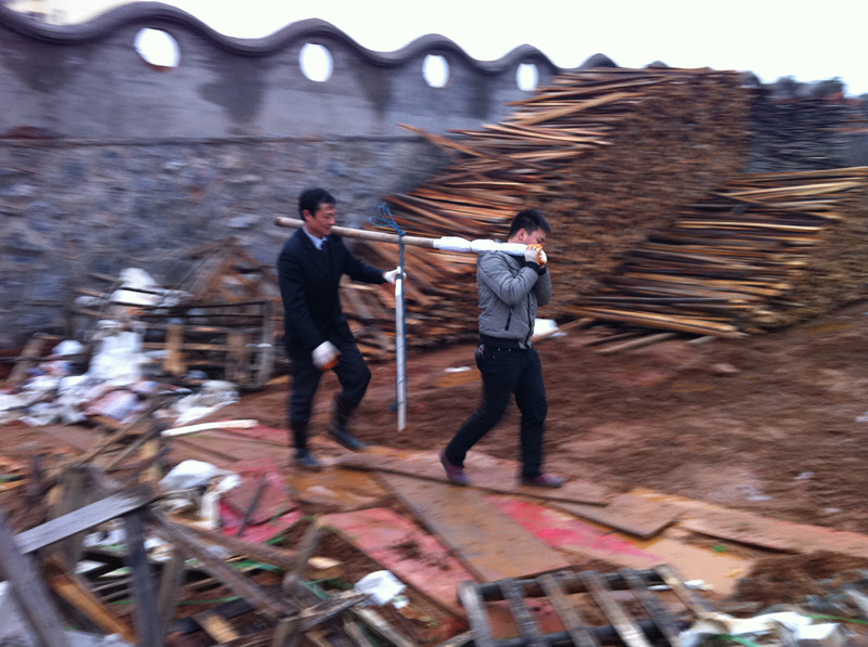 共青城兒童村項(xiàng)目管理人員冒雨工作場(chǎng)景